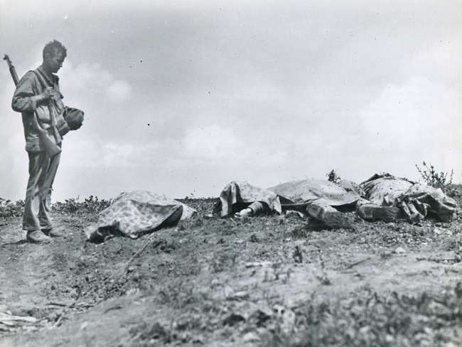 As Marines behind the lines ran supplies up to the grunts in the front, one survivor of the night action and a veteran of Peleliu was heard to tell his foxhole buddy about the upcoming fight, “This right here…well…this is gonna be a bitch.” He had no idea how accurate his prophecy would be.