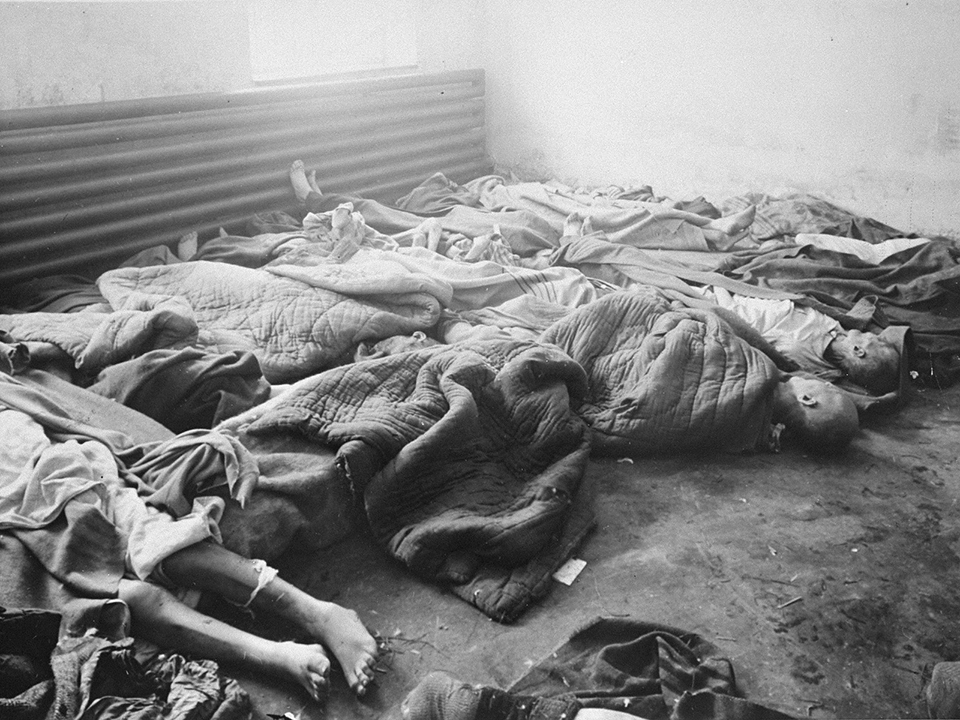 A photo of bodies discovered in a storeroom at Auschwitz. Death was a common sight throughout Himmler's concentration camp system. Courtesy of the United States Holocaust Memorial Museum.