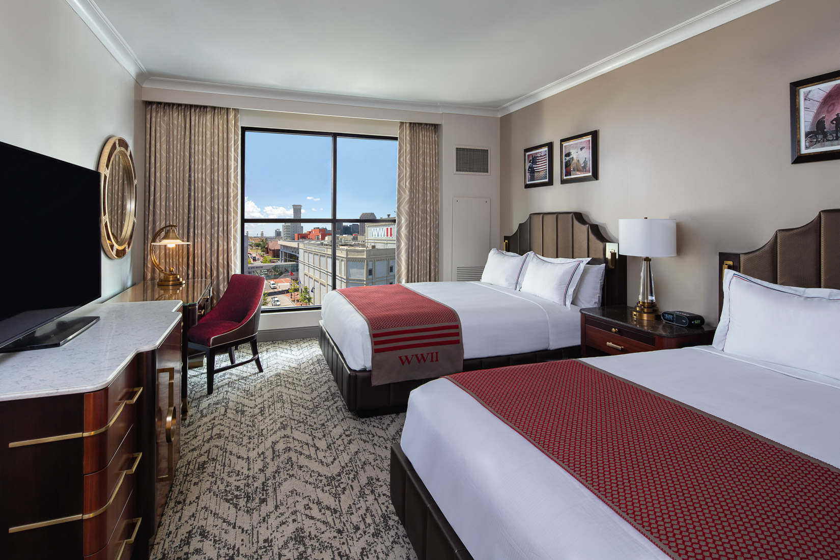 The Higgins Hotel & Conference Center is located on The National WWII Museum’s campus at the corner of Andrew Higgins Boulevard and Magazine Street. In addition to 230 guest rooms, the property offers the unique experience of full-service hotel accommodations with a convenient way to maximize time spent at the Museum.