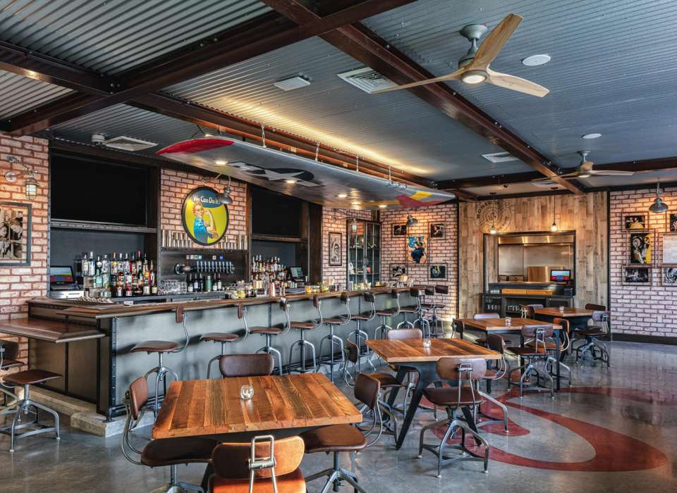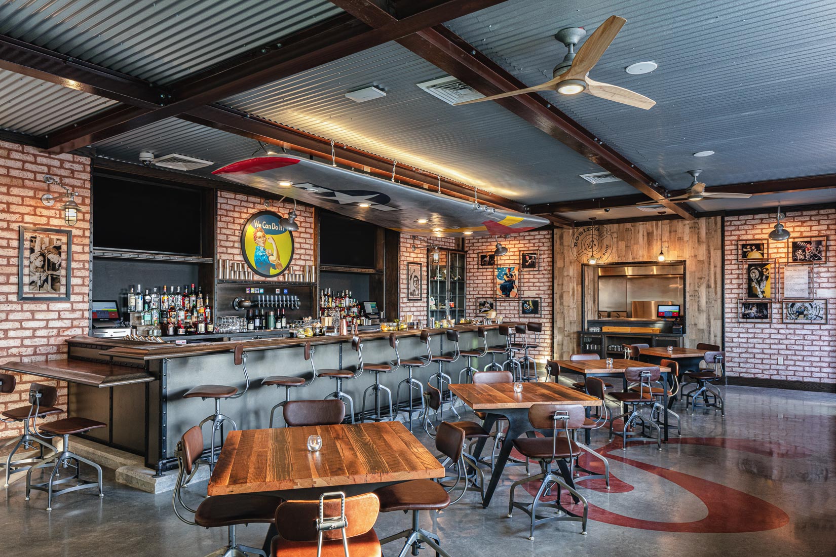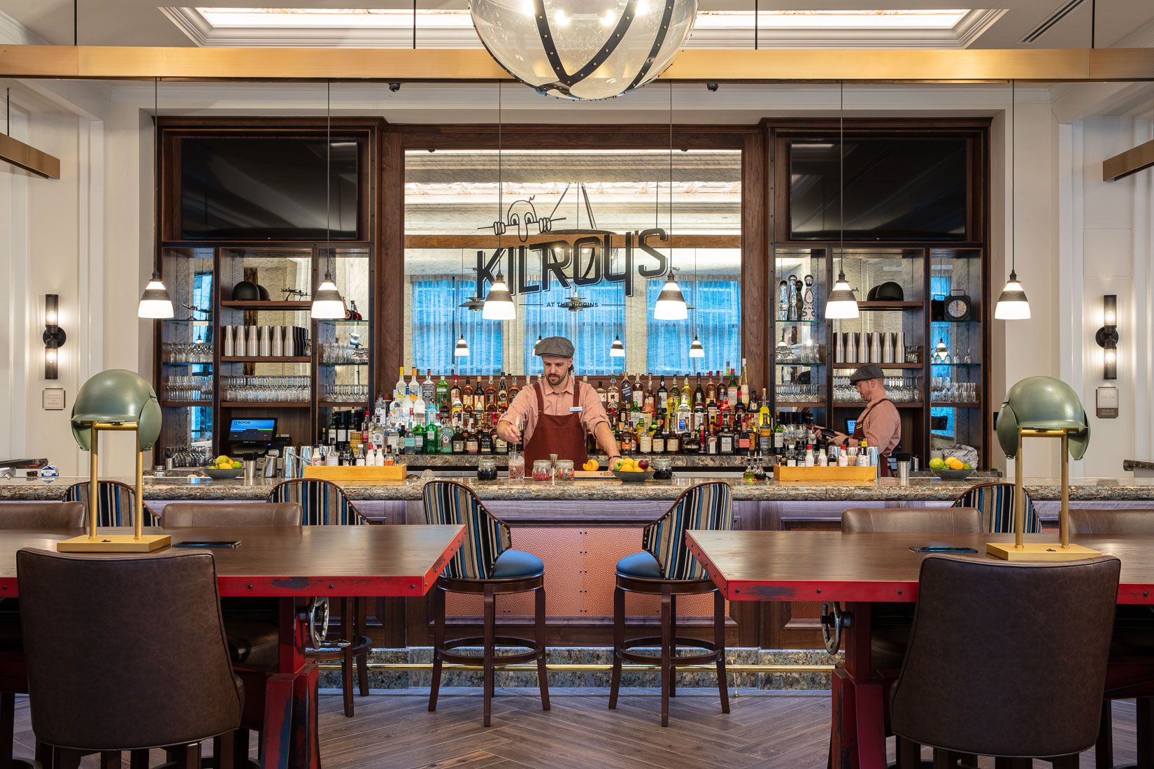 The Higgins Hotel’s lobby bar and lounge, Kilroy’s, is named after the iconic American cartoon who brought comedic relief during the war and offers bar bites with a Southern twist.