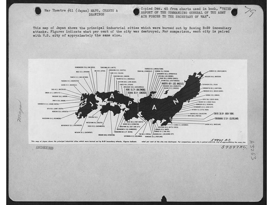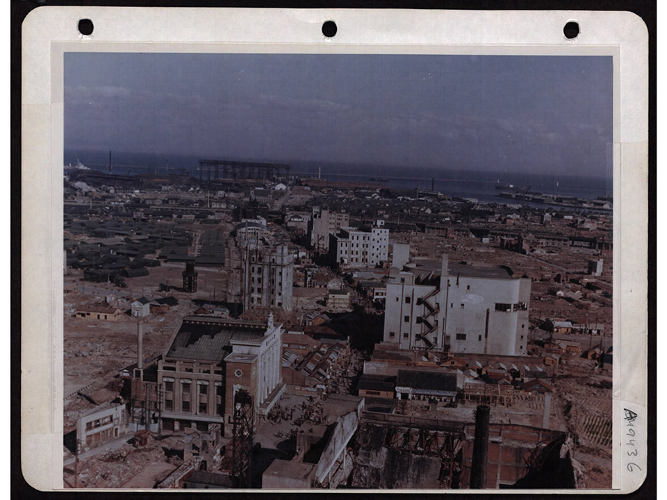 Top Photo: Bomb-damaged oil refinery in Osaka, Japan. Image courtesy of the US Army Air Force.