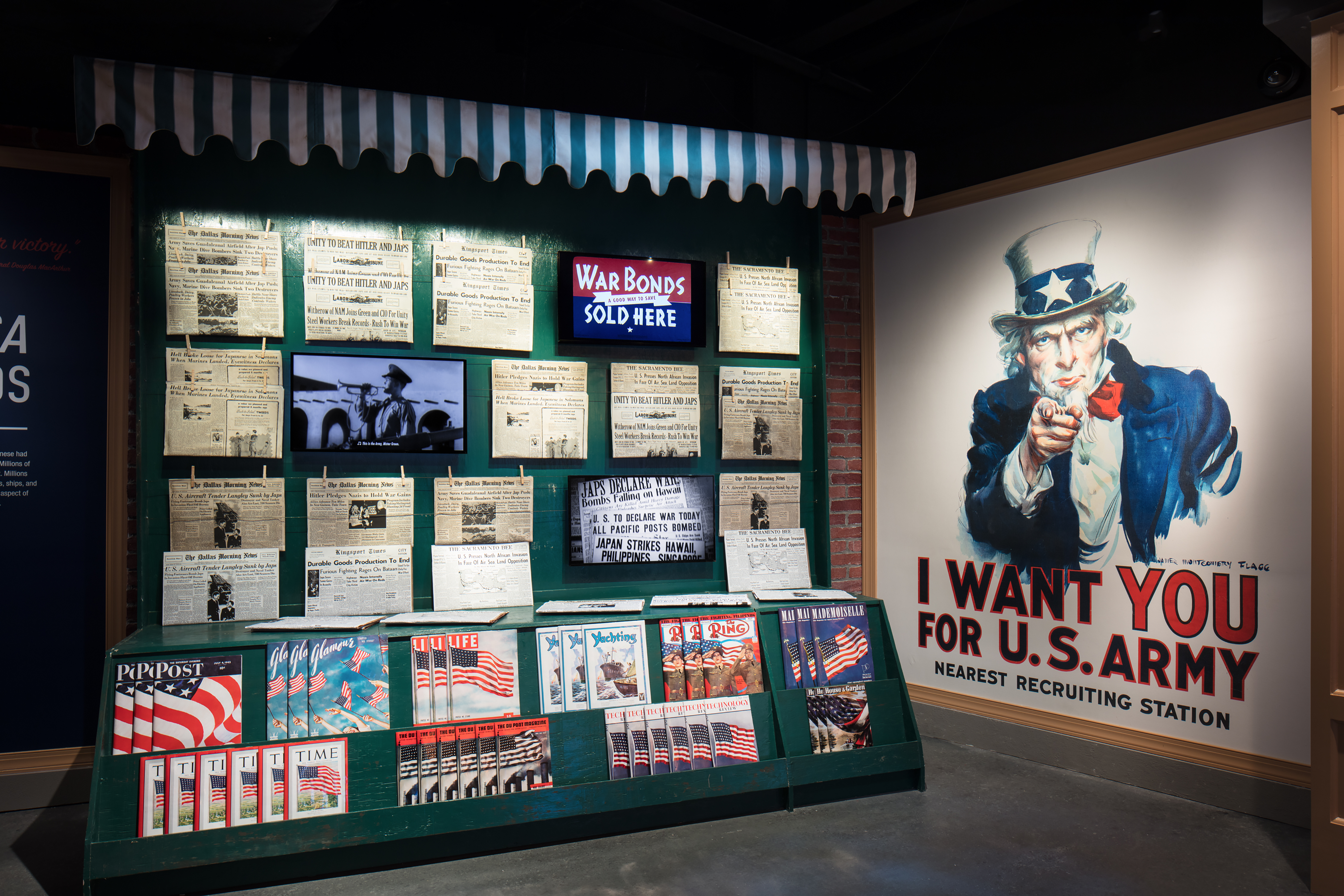 On the second floor of Louisiana Memorial Pavilion, The Arsenal of Democracy: The Herman and George R. Brown Salute to the Home Front tells the story of the road to war and the Home Front, drawing on personal narratives and evocative artifacts to highlight different facets of WWII-era American life. Through multimedia and interactive displays as well as artifacts and oral histories from the Museum’s extensive collections, The Arsenal of Democracy allows visitors to connect with the men and women who mobilized to fight the war.