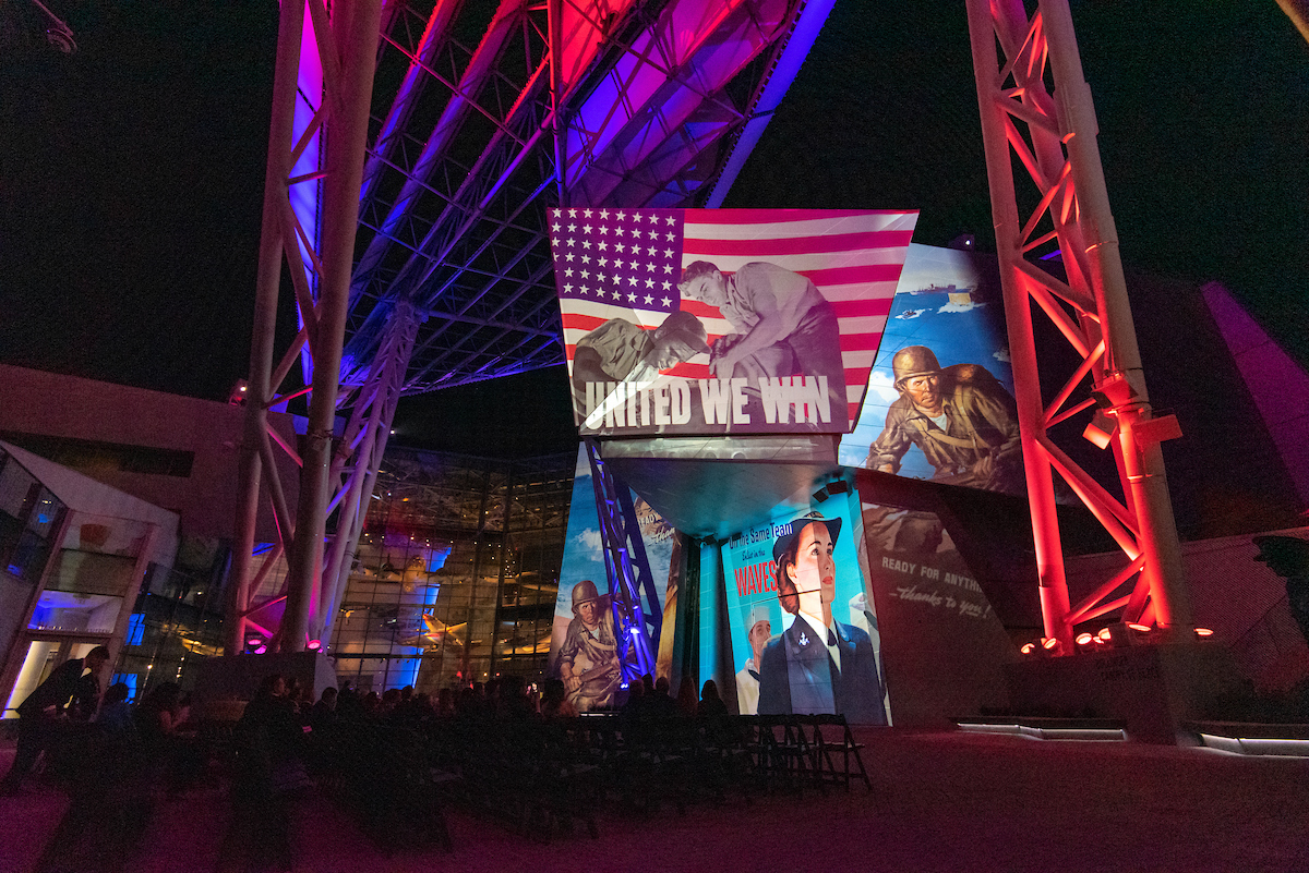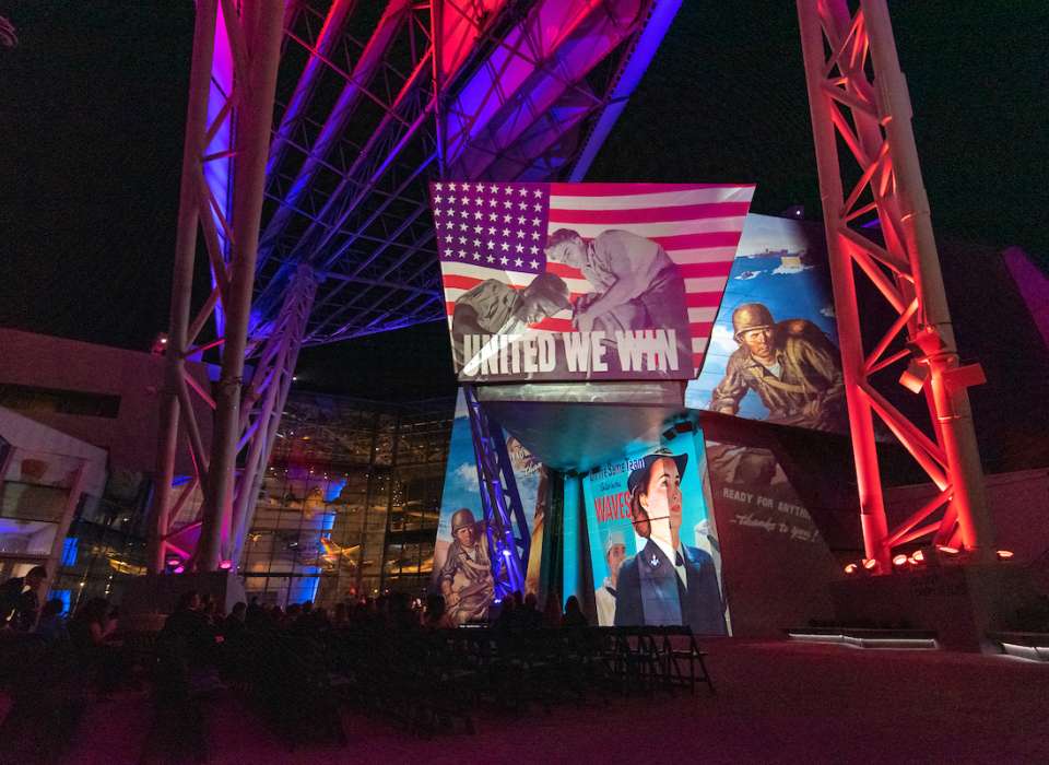 Music, art, and personal reflections of the 1940s bring history to life on a grand scale at Expressions of America, The National WWII Museum’s outdoor sound and light show. Stunning visuals projected 90 feet tall transform the exterior of the Museum’s buildings as actor Gary Sinise narrates an inspiring glimpse into what life was like for the men and women who served our country in every way imaginable. This nighttime spectacular for all ages combines cutting-edge technology with the real words of the WWII generation to present an experience like no other.