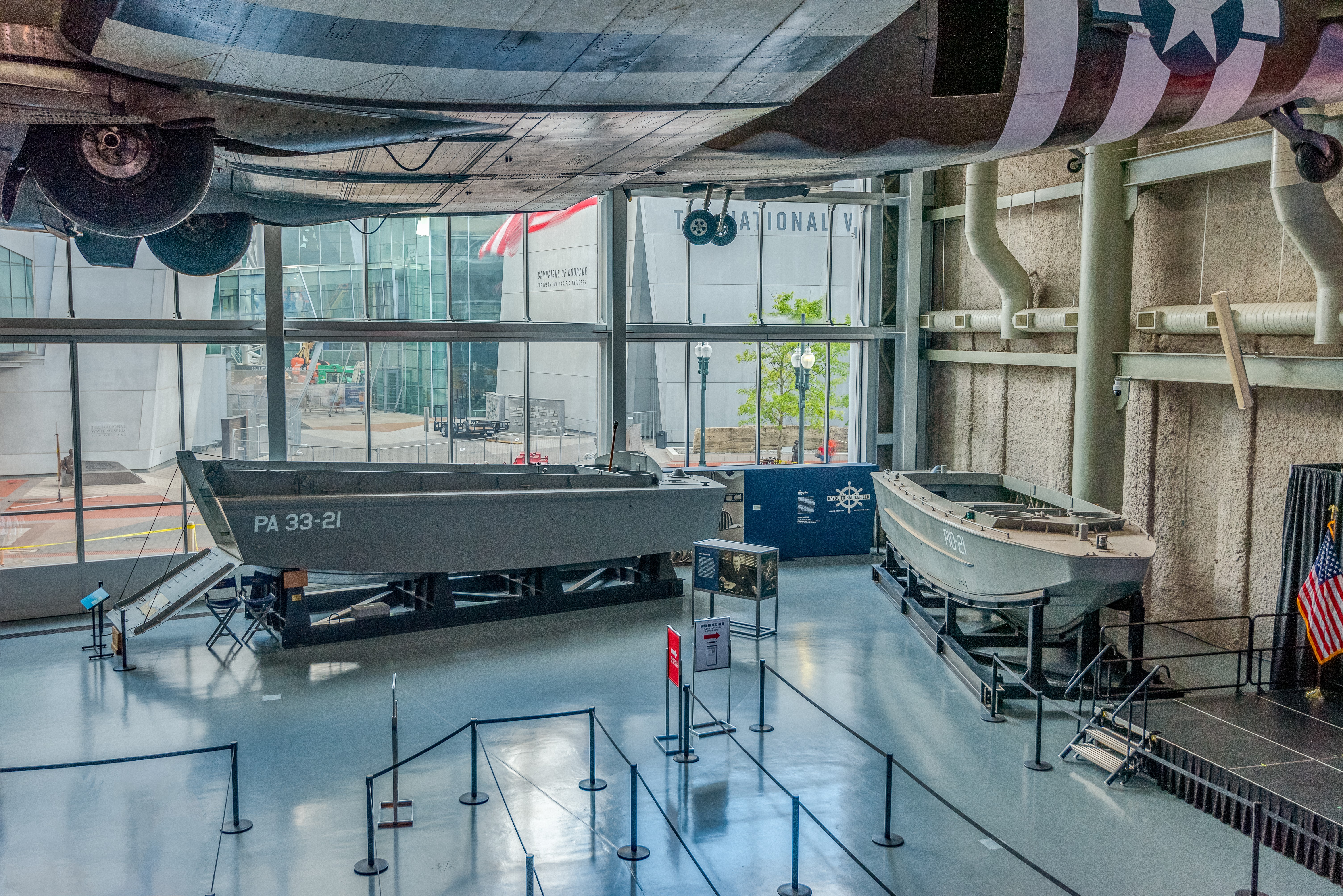 The National WWII Museum’s Louisiana Memorial Pavilion is home to a replica LCVP (Landing Craft, Vehicle, Personnel) made using original Higgins Industries drawings and plans. Built primarily by New Orleans firm Higgins Industries, the LCVP, or “Higgins Boat,” was instrumental to the Allied war effort, used as the primary assault craft during the D-Day landings in Normandy.