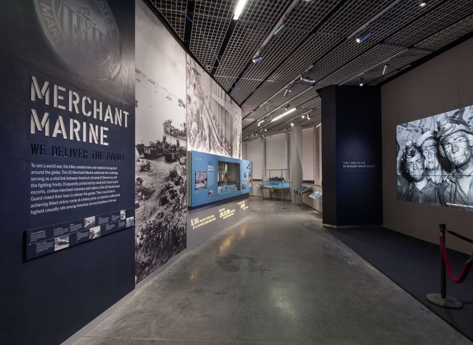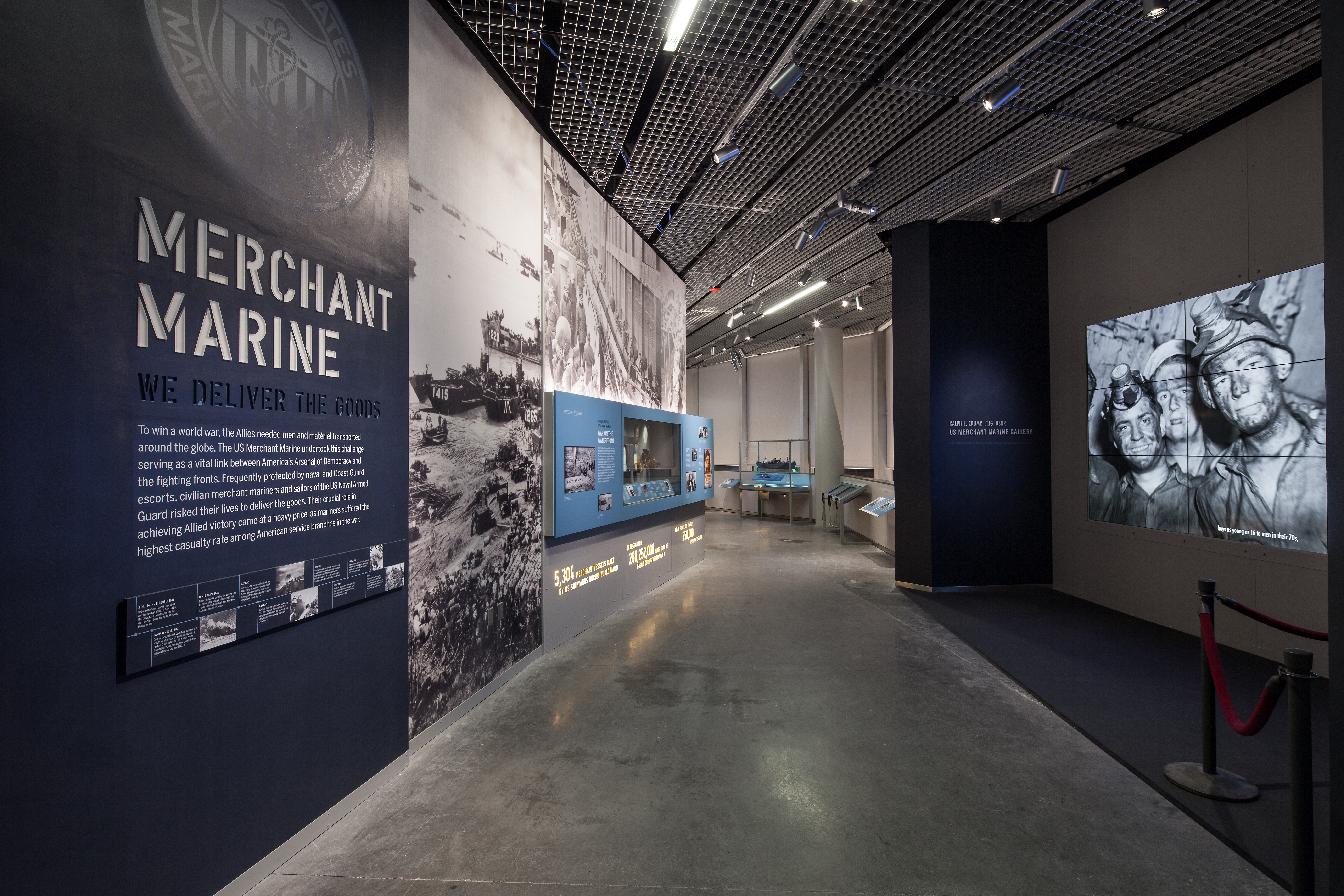 The Ralph E. Crump, LTJG, USNR US Merchant Marine Gallery honors the Merchant Mariners who risked their lives transporting weapons, men, and material to US troops overseas. Through video, artifacts, a model of a Liberty ship, and an engaging array of personal narratives, this exhibit tells their story, including impressive logistical feats, tales of constant danger, and the role of this hardworking group in transporting 7.3 million American soldiers to battle zones across the oceans and continents of the world. This standalone gallery is situated at the end of the Horatio Alger Association American Spirit Bridge on the second floor of the Solomon Victory Theater complex.