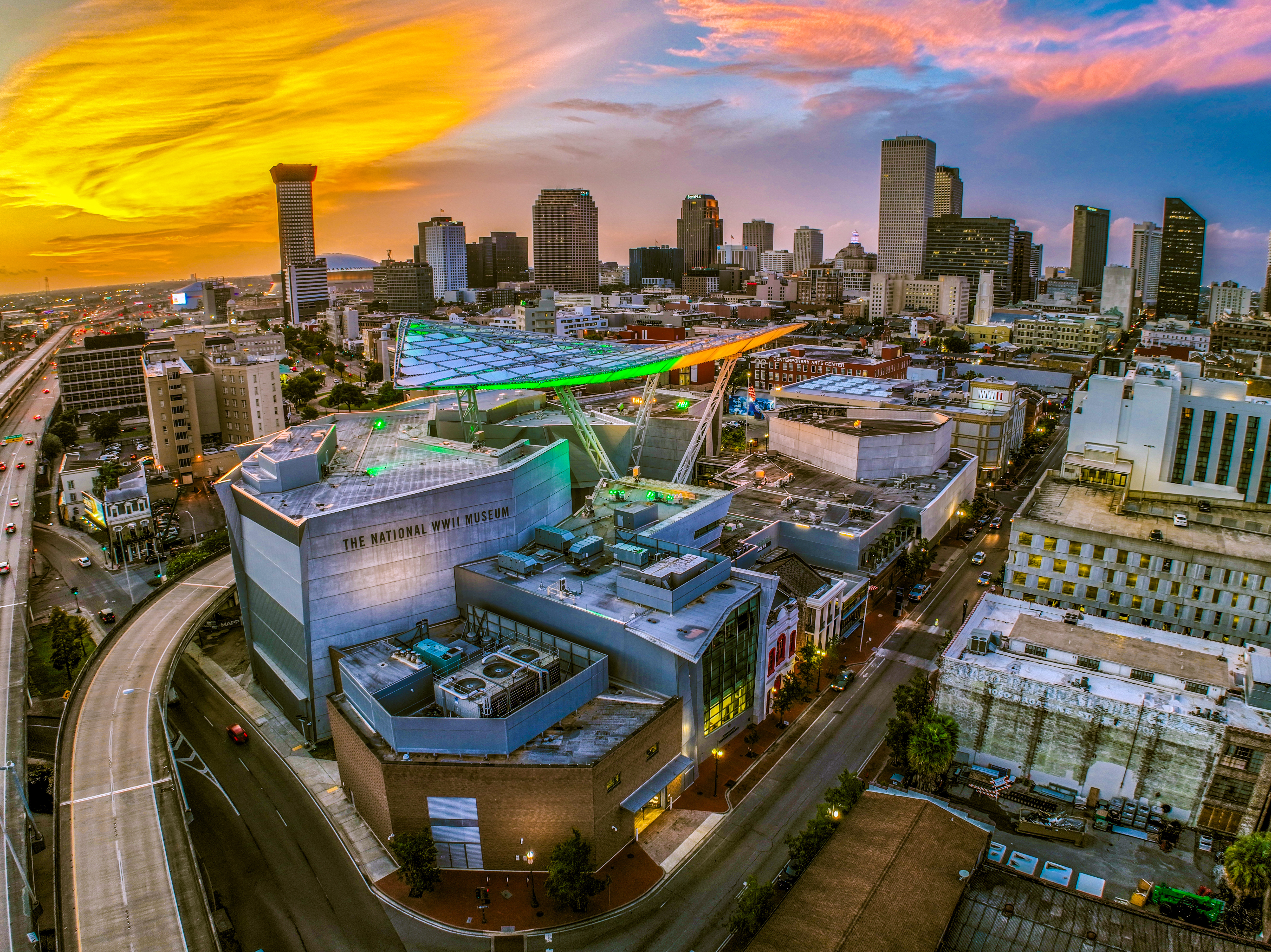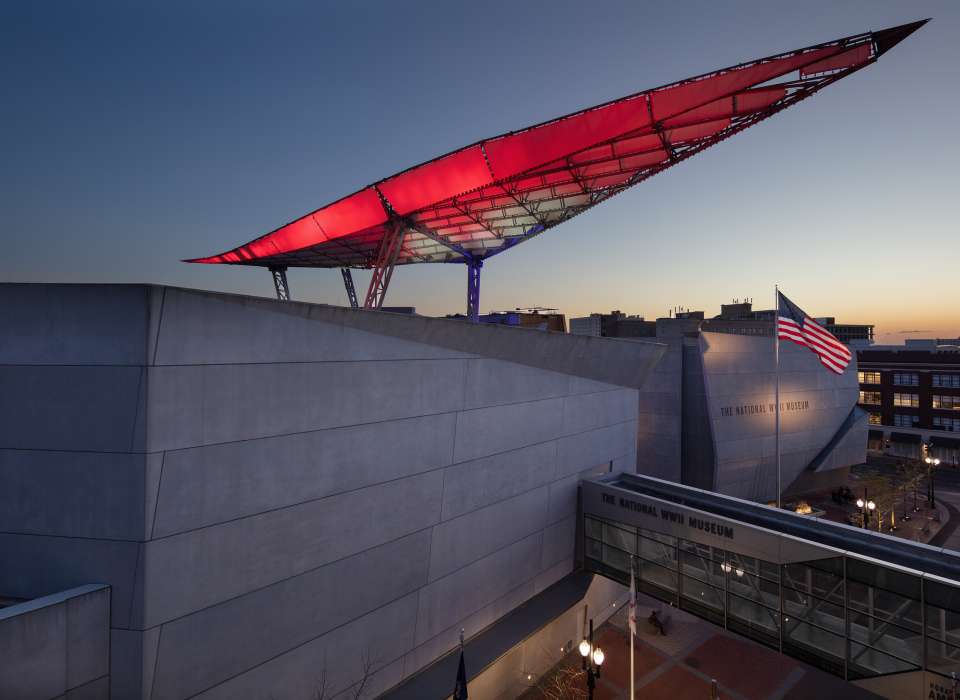 Rising nearly 150 feet above The National WWII Museum, the Bollinger Canopy of Peace’s bold design visually unifies the Museum’s architecturally distinctive campus while reflecting the significance of the Museum’s mission, symbolizing the values that the WWII generation fought for, the sacrifices they made, and the peace, optimism, and hope they ultimately won for our country.