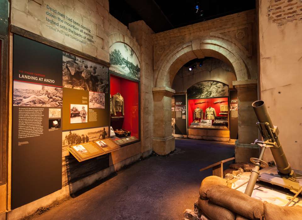Featuring five major exhibits—Invasion of the Italian Peninsula, Fighting up the Peninsula, Anzio, Liberation of Rome, and Fight for the Gothic Line—The Italian Campaign gallery tells the story of the Allies’ mainland assault on Italy, which turned into a hard, deadly slog over many months. Visitors hear about soldiers’ experiences in their own words through oral histories, which recount battles and everyday life in the war. The exhibits communicate both the broad strategic complexity of warfare and the individual bravery and leadership of the servicemembers who took part in it.