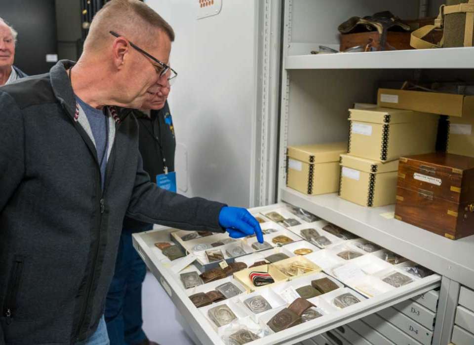This two-and-a-half-hour experience gives visitors the opportunity to go beyond our galleries to interact with genuine WWII artifacts from the Museum’s private Center for Collections & Archives. In addition to behind-the-scenes artifact exploration, an expert Museum guide will lead you on private tours of The Arsenal of Democracy (Home Front) exhibit and either Road to Berlin (European Theater) or Road to Tokyo (Pacific Theater) exhibit.